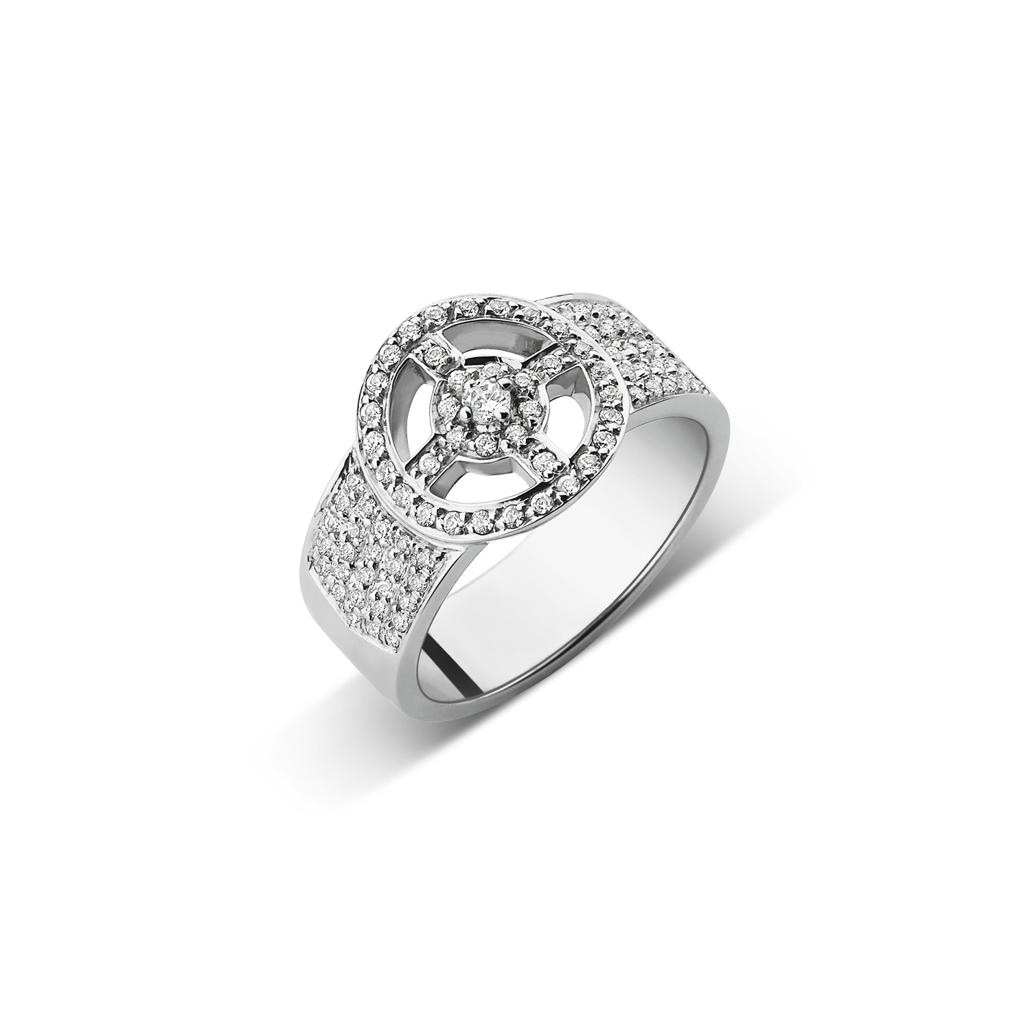 La bague Caprice vous invite à vous laisser emporter par le tourbillon de l’amour fou. Laissez vos sens se perdre dans cette danse sensuelle et enivrante rythmée par de belles courbes rondes dans des couleurs variées. Dans une monture faite d'or blanc sertie de diamants, les cercles symbolisent le lien amoureux qui ne se délie jamais. Incarnation d'un tourbillon de plaisirs incessants, cette pièce vous ouvre les portes d'une belle façon de faire rimer amour avec éternité Se laisser emporter par le tourbillon de l’amour pour ne plus s’en échapper… Laissez vos sens se perdre dans cette danse sensuelle et enivrante rythmée par de belles courbes rondes dans des tons noirs ou blancs ! Les cercles symbolisent le lien amoureux qui ne se délie jamais. Un tourbillon de plaisirs incessants, une belle façon de faire rimer amour avec éternité.