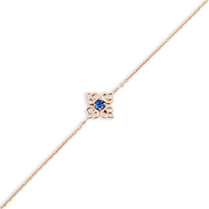 Le bracelet Siroun est inspiré de la collection de croix arméniennes Khachkars. Il ne ressemble à nulle autre avec son motif carré, créé de toute pièce en partant des extrémités tréflées de l’arbre de vie. Stylisé et ouvragé comme du filigrane ou de la dentelle, en or rose; serti d’un centre saphir diamant, ce modèle se distingue par le travail du métal en plein et en déliés, avec des finitions aussi soignées à l’envers comme à l’endroit. Symbole de protection, de sagesse et d’éternité, le bracelet Siroun magnifie la féminité d’aujourd’hui avec un style ultra-contemporain et sophistiqué. Toutes les pièces de ce bijou comportent des gemmes exceptionnelles soigneusement sélectionnées. De l’esquisse au bijou fini Ce modèle a été imaginé et dessiné dans notre atelier de création, installé en plein cœur de la vallée de l’Eure. Ensuite, c’est dans le pur respect de la tradition joaillière artisanale française que notre fabrication s’est exécutée dans notre atelier parisien. Enfin, chaque bijou bénéficie d’une garantie décennale sur la fabrication avec un contrôle du sertissage, un polissage et un rhodiage offerts tous les deux ans et exclusivement réalisé par notre atelier.