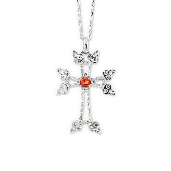 Le pendentif croix arménienne Naïri or blanc s’inspire directement de l’art ancestral arménien.