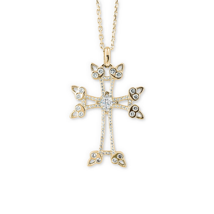 Le pendentif croix arménienne Naïri or jaune s’inspire directement de l’art ancestral arménien.