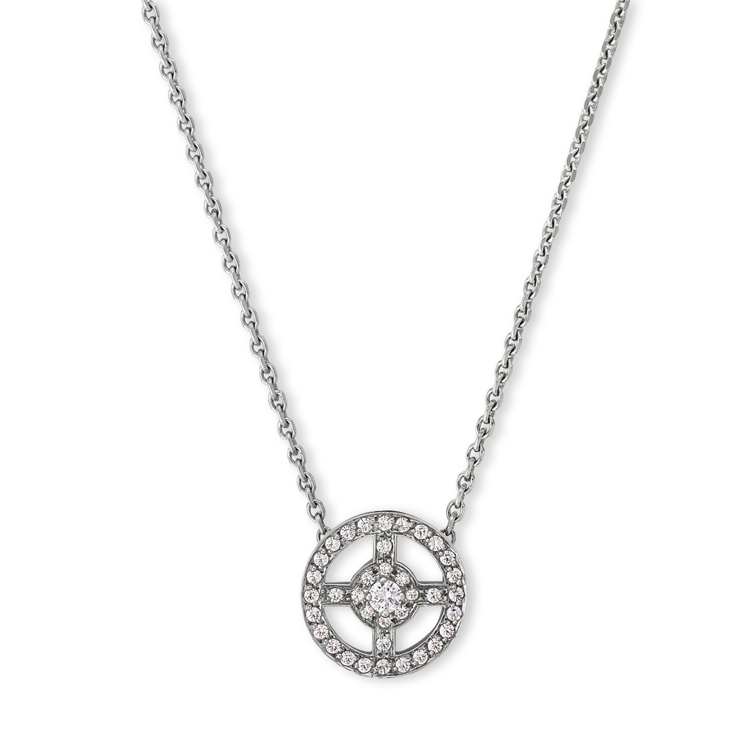 Pendentif or blanc aux courbes rondes serties de diamants