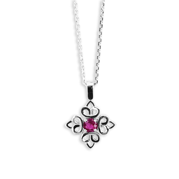 Par ailleurs, l’or blanc révèle avec douceur chaque détail du motif. De plus, le sertissage délicat d'un diamant naturel ou d'une pierre de couleur capte intensément la lumière. Le diamant renforce alors l’éclat du bijou et le pendentif illumine le décolleté avec élégance et subtilité.